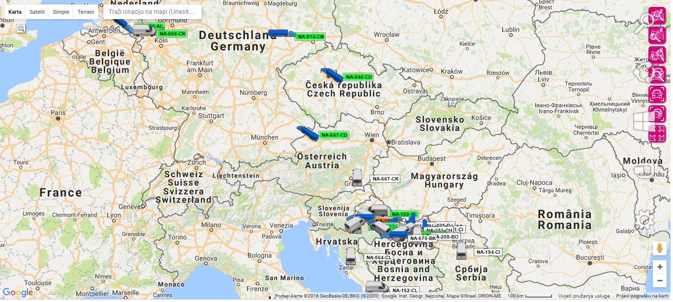 Naša vozila se prate 24h na dan uz pomoć modernog nadzora vozila – Cloud. U svakom trenutku možemo vam dati informaciju gdje se vozilo s vašom robom nalazi i vrlo precizno ocijeniti vrijeme dolaska vozila na utovar ili istovar. Također Cloud nadzor vozila nudi razne mogućnosti prikupljana podataka o vozilu i aktivnostima vozača.